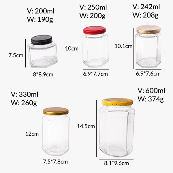Product Name: Wholesale Hexagonal Glass Honey Jars with Metal Lids